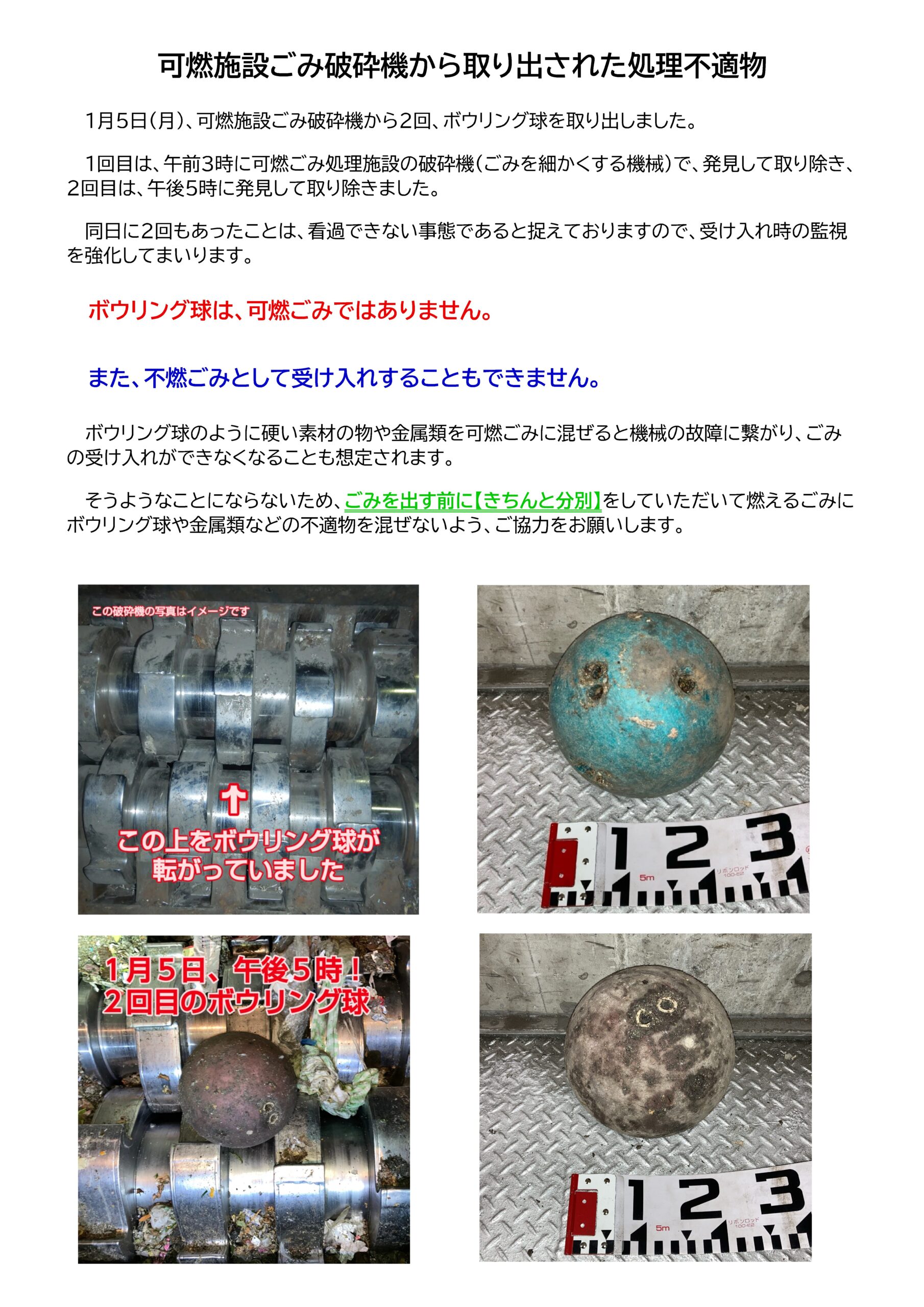 可燃施設ごみ破砕機から取り出された処理不適物