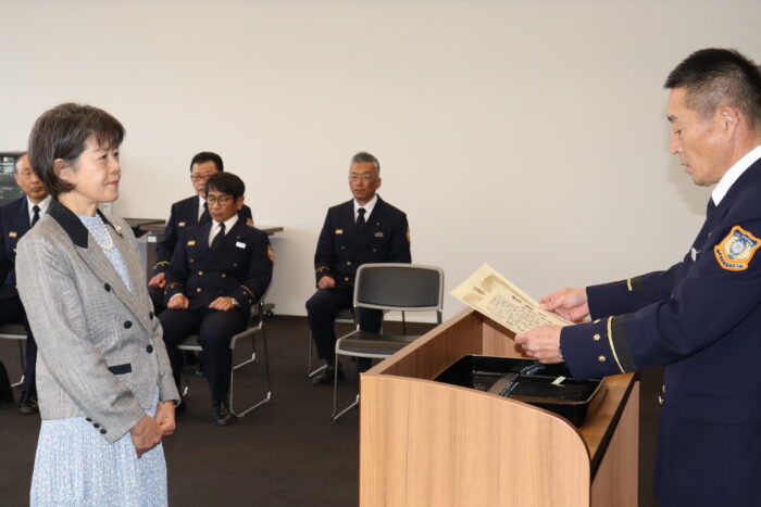 尊い命を救った功績に対し感謝状を贈呈しました。